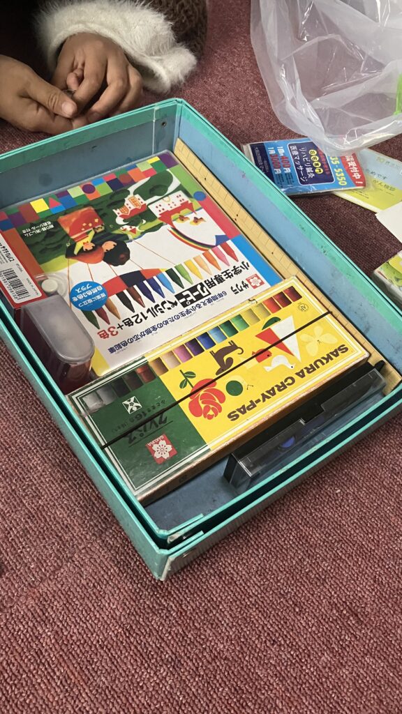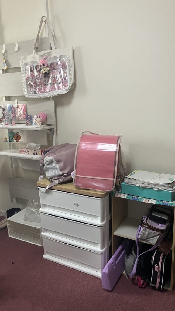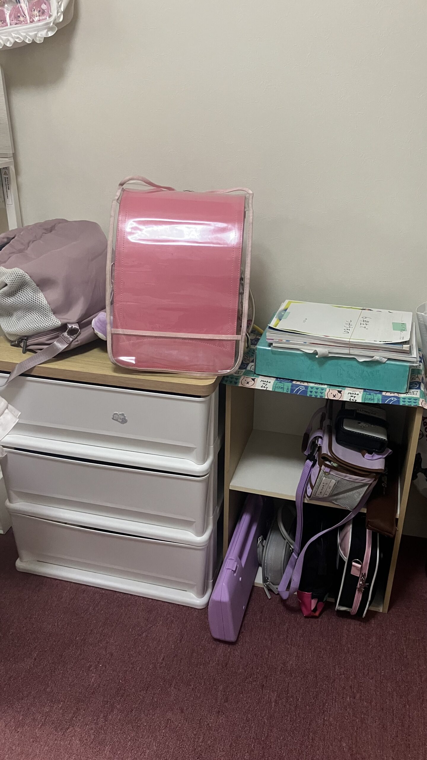 横には春休みなので持ち帰った学用品置き場もできました。
